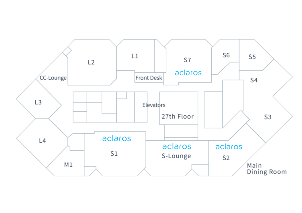 Vantage Venues hosts multiple events through out the day, please note on the map below the rooms in which the events for the aclaros Conference will be occurring.